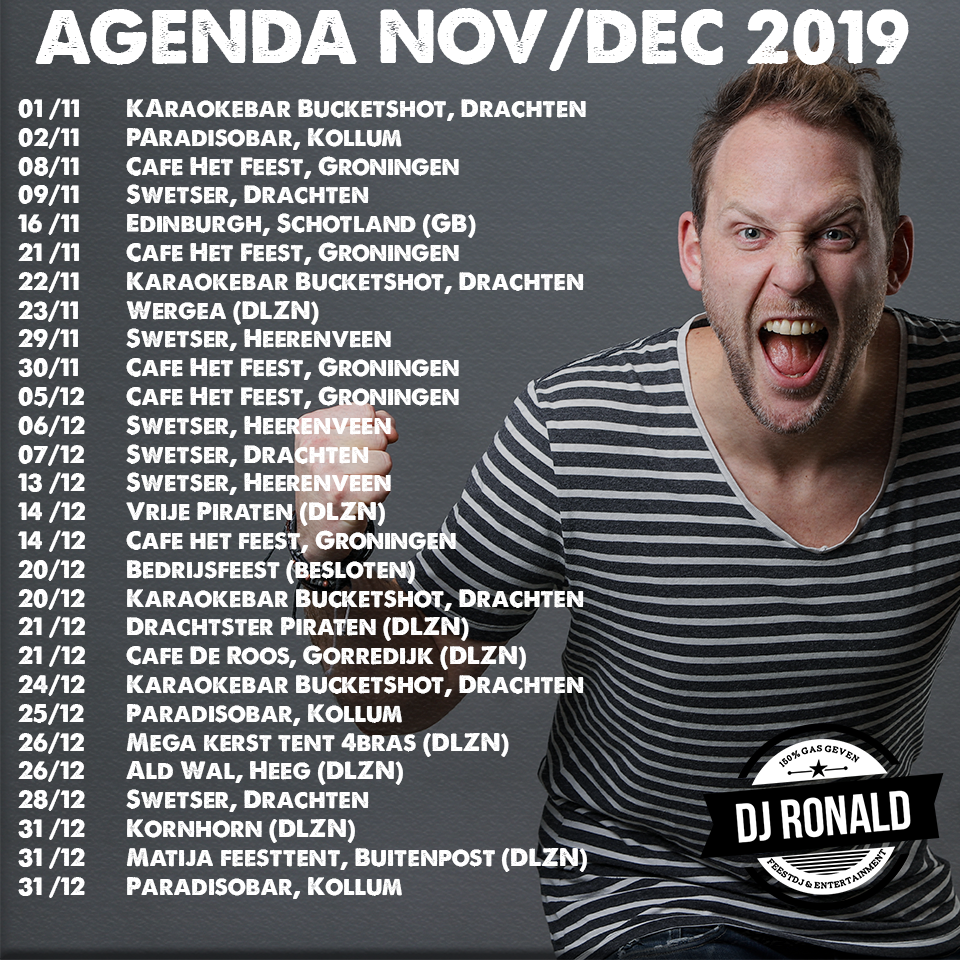Benieuwd waar ik de komende tijd sta? Check de agenda!